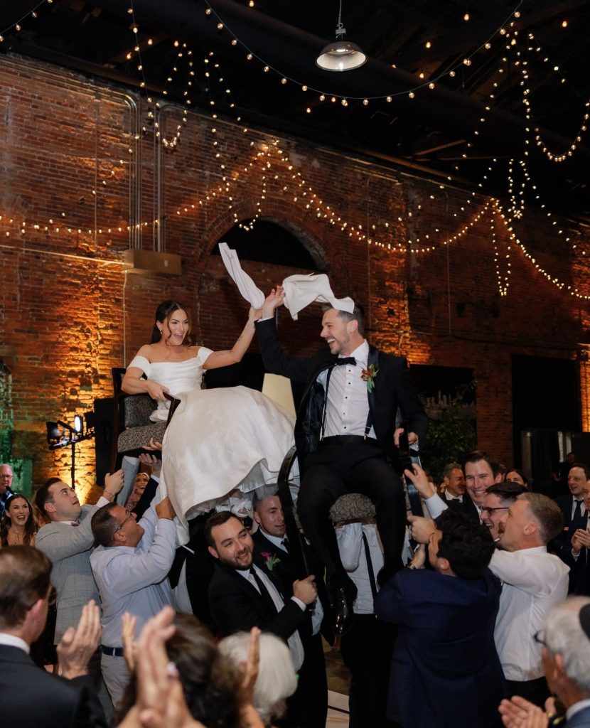 The day began with Jamie getting ready in a downtown hotel, setting the tone for the entire celebration. The city backdrop added an effortlessly chic, editorial feel to the morning, creating the perfect environment for relaxed, meaningful moments before the festivities began. Jamie wore a stunning gown from Brides by the Falls that fit her style perfectly. Jamie and Jake’s wedding beautifully honored their heritage with a traditional Jewish ceremony. The day included a Ketubah signing, the joyful energy of the hora, and the meaningful breaking of the glass-each moment adding depth and significance to their celebration.