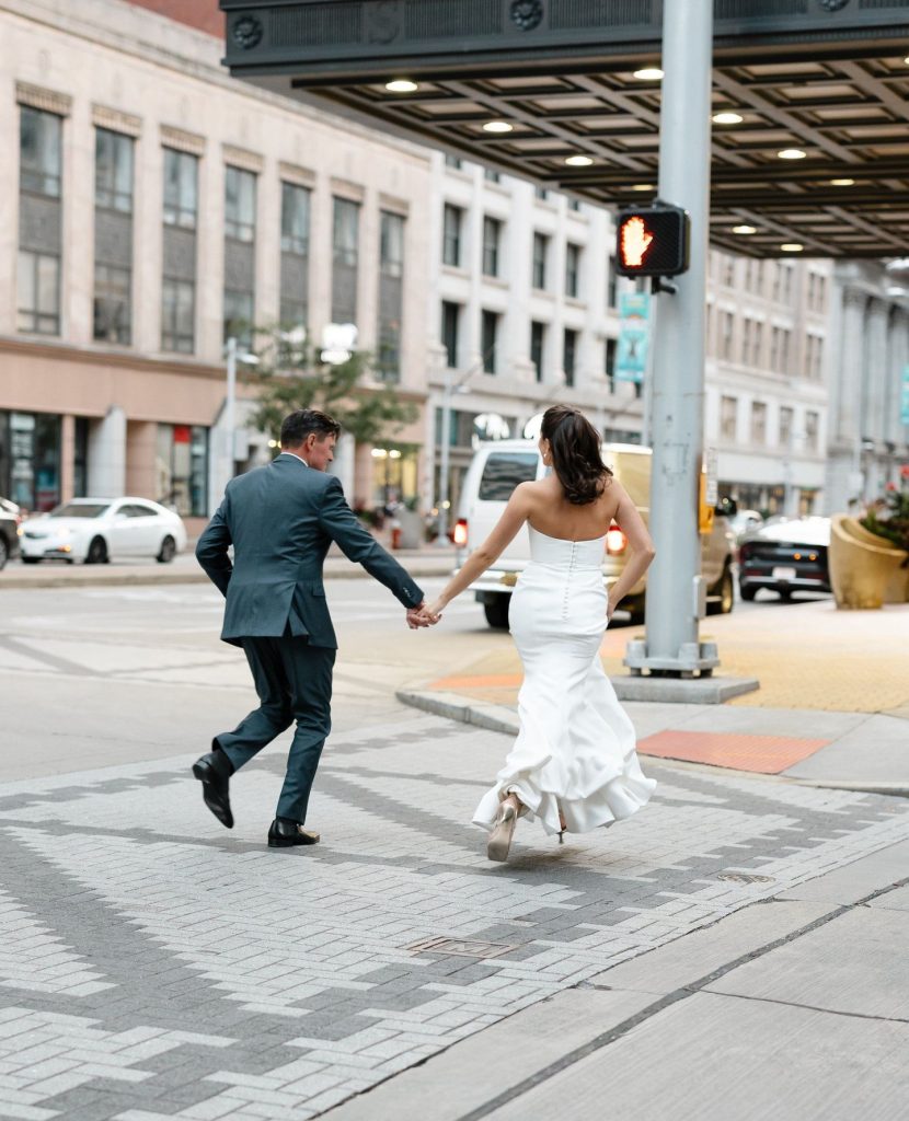 Every detail told a story — from the romantic floral arrangements to the coffee cart that greeted guests with warmth and charm. And then, there was the moment you see in movies — Anna and Michael running hand-in-hand through the city streets laughing, a perfect blend of old-world romance and modern spontaneity.