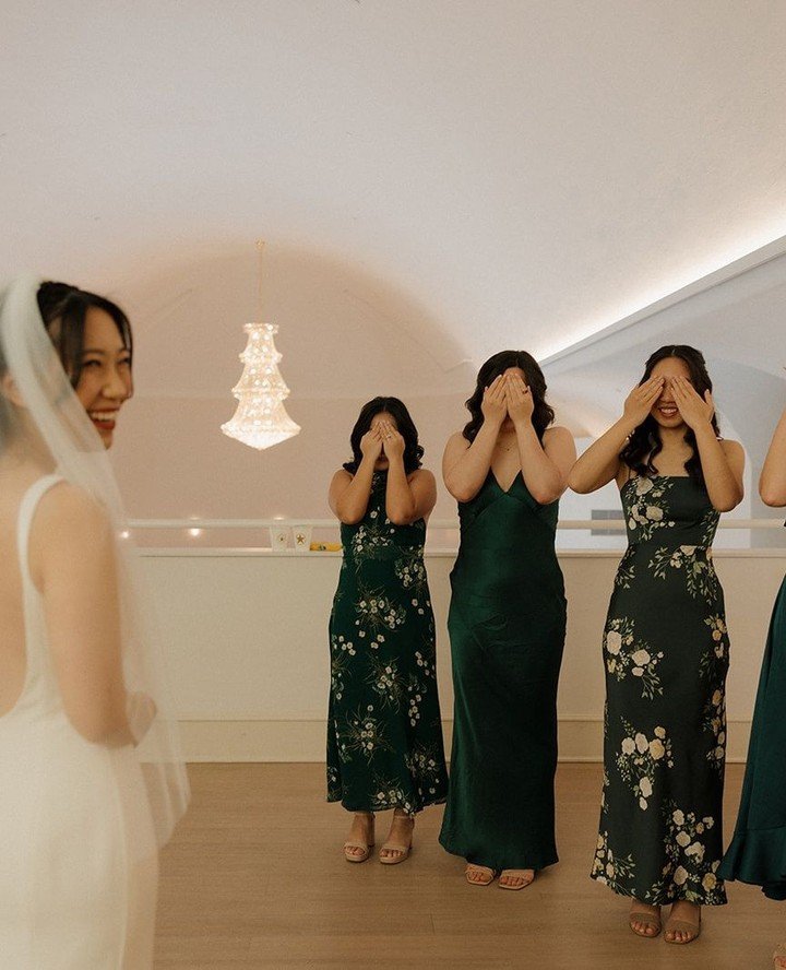 The morning began with the sweetest anticipation. The bridal party gathered upstairs, where laughter and quiet excitement filled the air as Esther and her bridesmaids got ready. In a special moment before the ceremony, Esther shared a first look with her bridesmaids, revealing her dress. Their reactions were priceless-full of joy, support, and admiration, creating a memory that will be cherished for years to come.