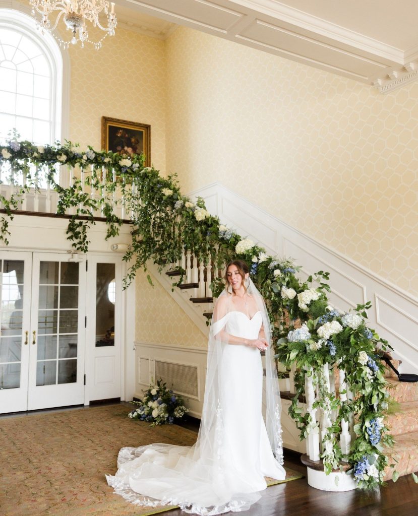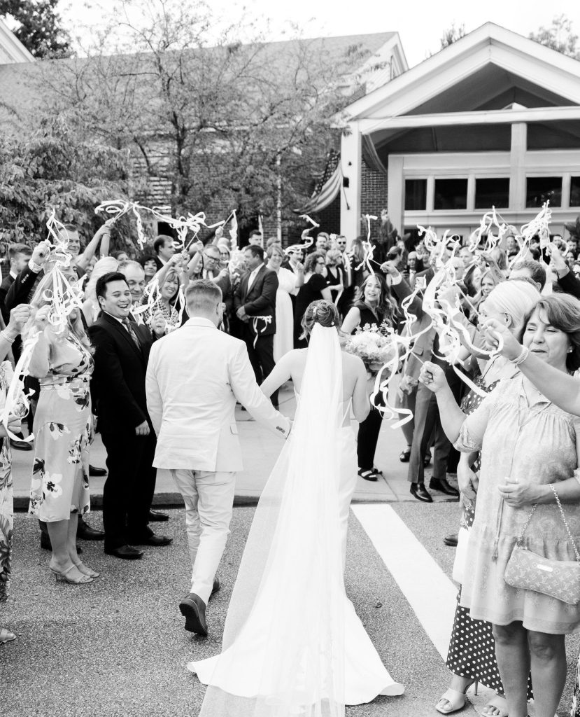 Jamie and Shane’s summer wedding was wonderfully whimsical—a celebration painted in serene shades of blue and filled with heartfelt moments from start to finish. Their day began with a beautiful church ceremony, where lush florals wove gracefully through the space as the couple exchanged vows surrounded by their loved ones. They even had the sweetest ribbon exit from the ceremony as they headed to their reception together as a married couple!