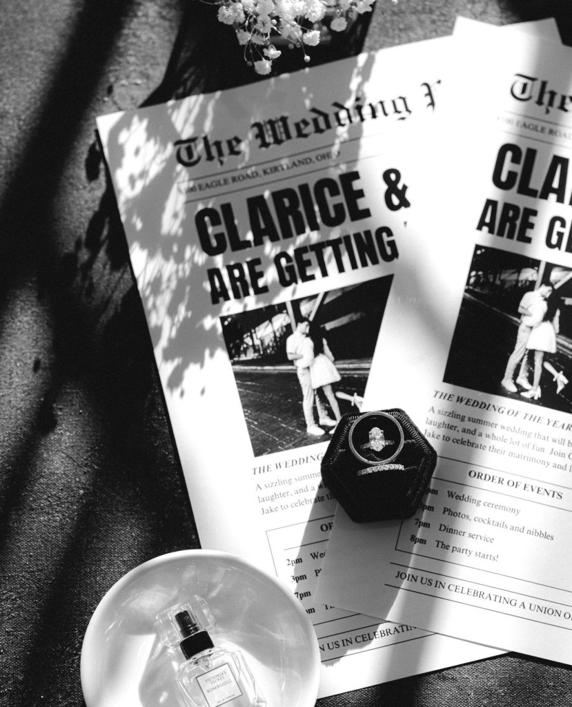 Instead of a traditional program, Clarice and Jake designed a custom newspaper-style guide for the day’s order of events. It was both stylish and fun for guests to read through while learning more about the couple and what the evening had in store.