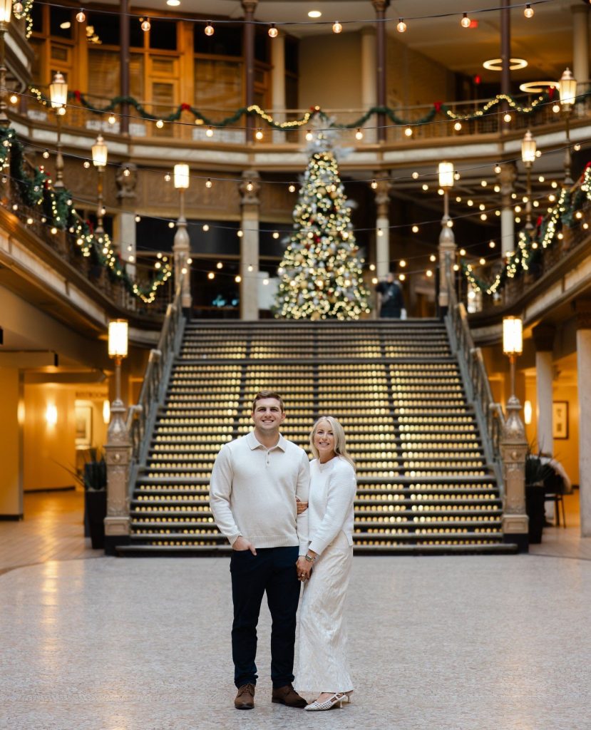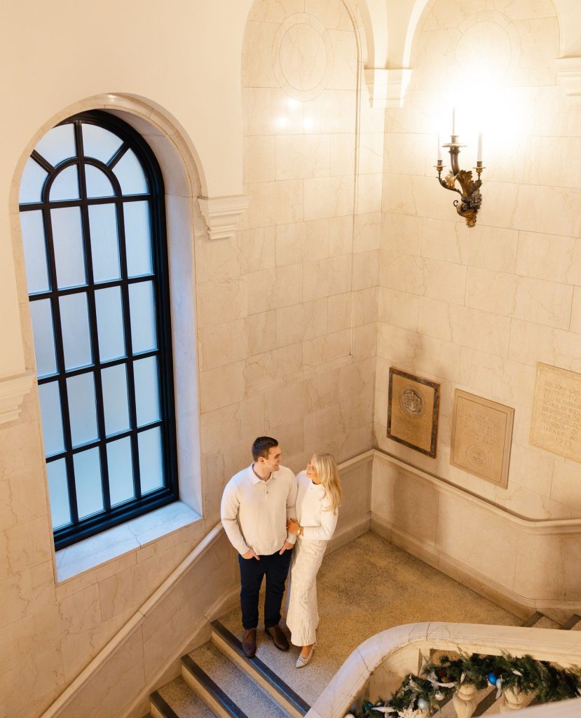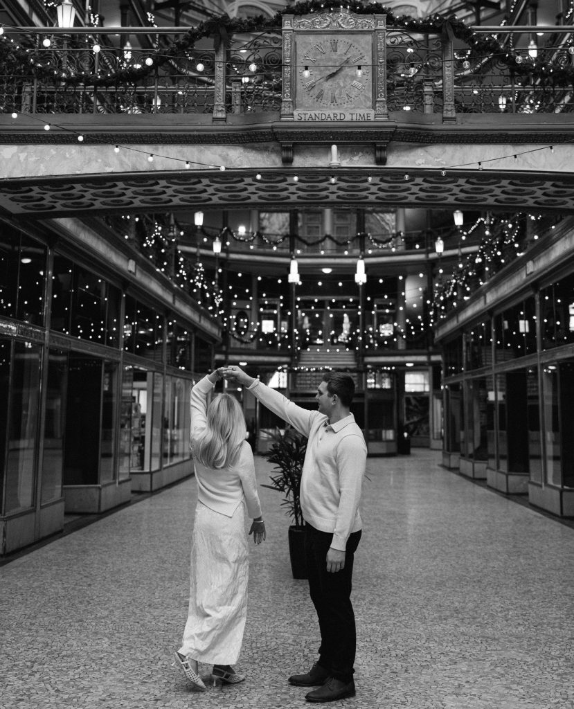 There’s something undeniably romantic about winter in Cleveland-especially when love is wrapped in fresh snow, glowing lights, and timeless architecture. This engagement session by Photos by Teenzy captured all of that magic and more, telling a story that feels both cinematic and deeply intimate. Set against the twinkling lights of The Arcade and the grand, historic beauty of the Cleveland Public Library, this session was the perfect blend of elegance, warmth, and anticipation.