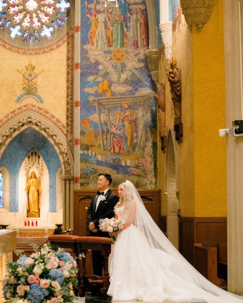 Alexandra & Jason’s wedding was a dream of elevated pink and gold fun, perfectly blending chic details with playful touches that made the day unforgettable. The couple kicked off their celebration with a gorgeous church ceremony complete with a ribbon exit, a sweet and playful start of their forever together, before moving on to a ballroom-style reception that was pure perfection.