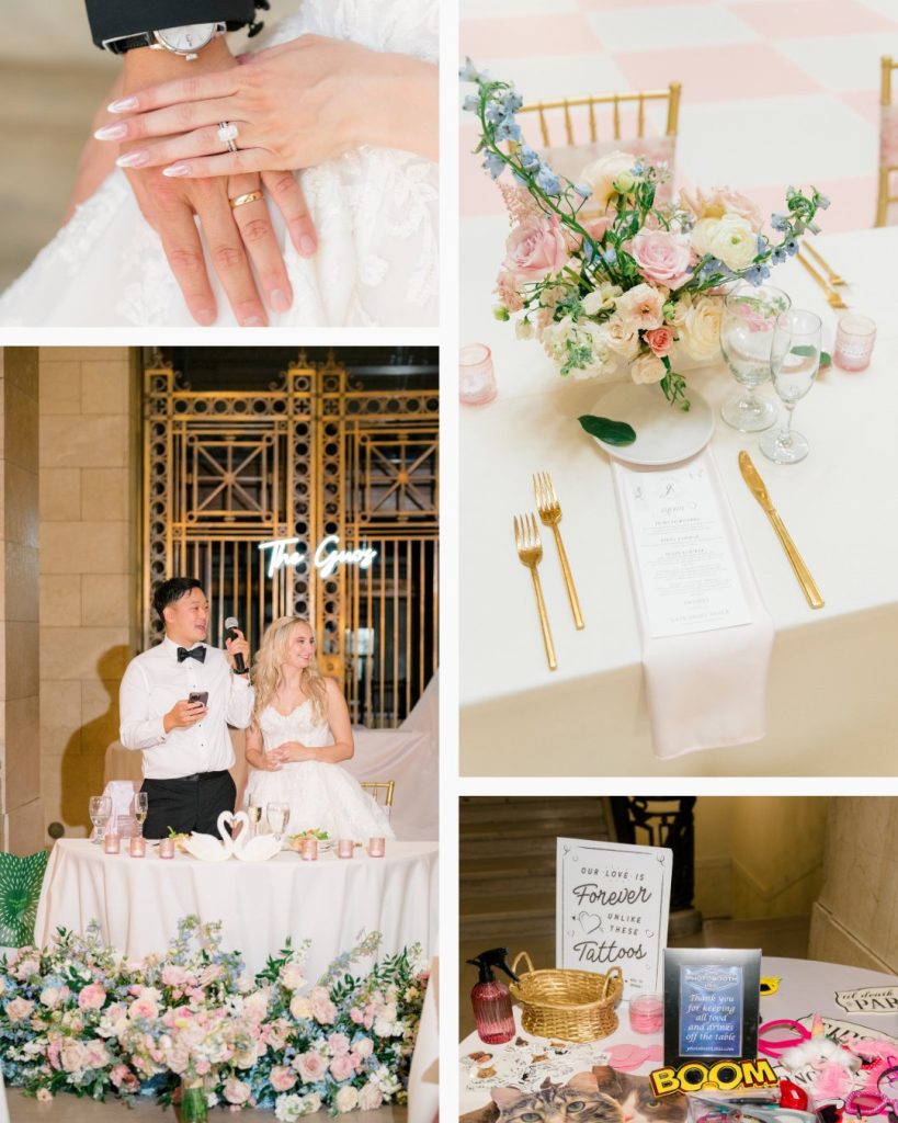 The bridesmaids looked absolutely iconic in the perfect shade of pink dresses and guests were treated to an interactive moment they won’t forget: a temporary tattoo station that read, “Our love is forever, unlike these tattoos.” It was such a fun, memorable addition that perfectly matched the couple’s playful spirit.