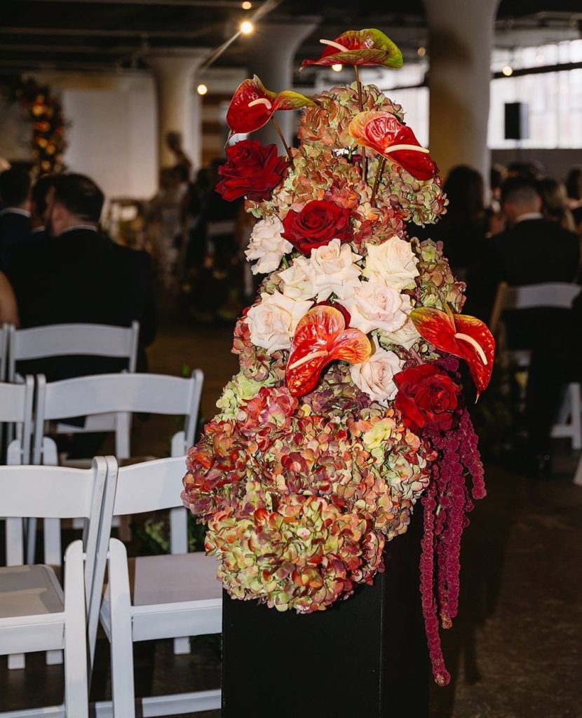 So Bloom Floral and Design truly stole the show. With a vision centered on romance and elegance, they brought the day to life through lush arrangements featuring perfect red roses. From the dramatic ceremony arches to the intricate table centerpieces, every floral element added depth, passion, and a timeless sense of beauty. The red accents were bold, yet romantic. A color choice that added both warmth and drama to the celebration.