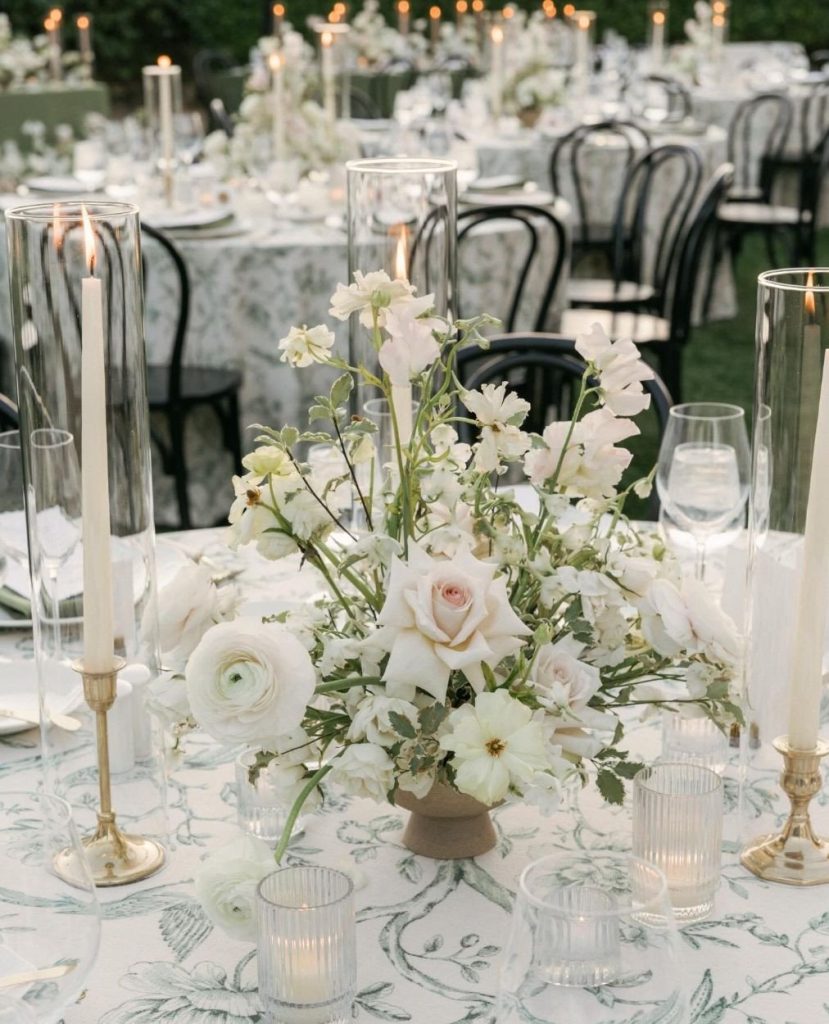 That same gown made its way to Scottsdale, Arizona becoming the perfect companion for a celebration set against the beauty of the desert. The delicate floral detailing carried effortlessly throughout the day, tying in to every element, from the thoughtfully arranged crisp white florals placed for guests to admire at their seats to the elegant cake the newlyweds shared together. This gown was the star of the show and really tied everything together!