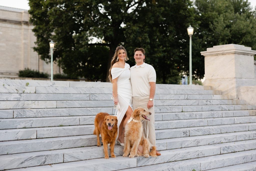 Adding a personal touch (and a little extra cuteness) to the shoot were their two beloved dogs, who happily joined in for a few frames. It was a fun and heartwarming reminder that love isn’t just about two people-it’s about the little family they’re already building together.
