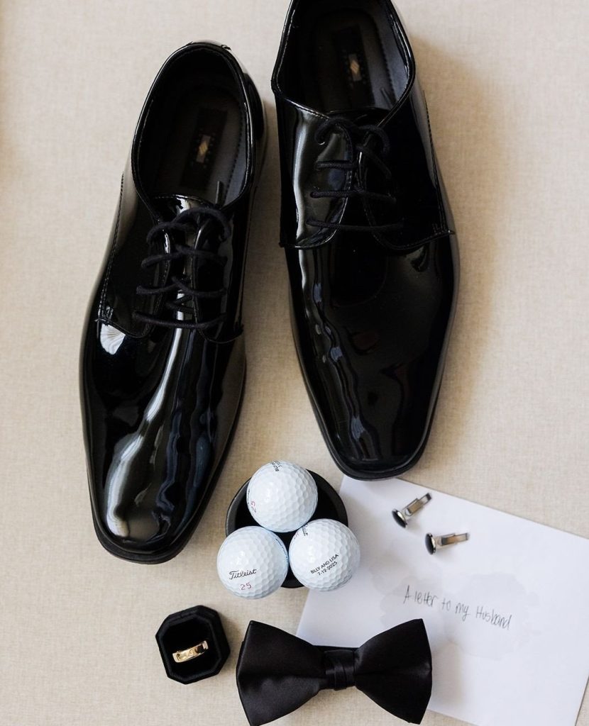 We love the bridal detail shots of Lisa’s pearl clutch and golf balls and a bow tie for Billy, a modern yet classic touch that perfectly complemented the refined aesthetic of the day. Every detail felt elevated, yet warm. The refined, timeless stationery by Brittney Nichole Designs set the tone from the very beginning, leaving guests swooning before the celebration even began.