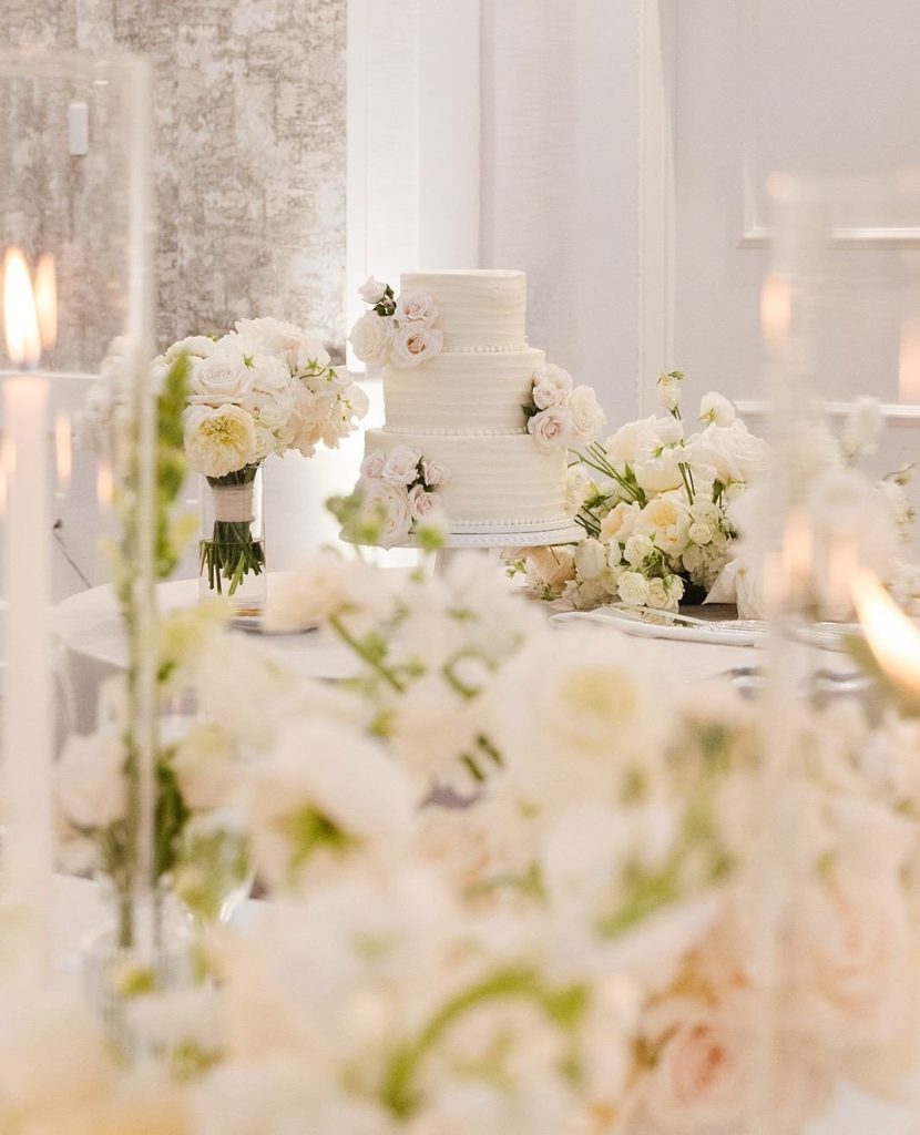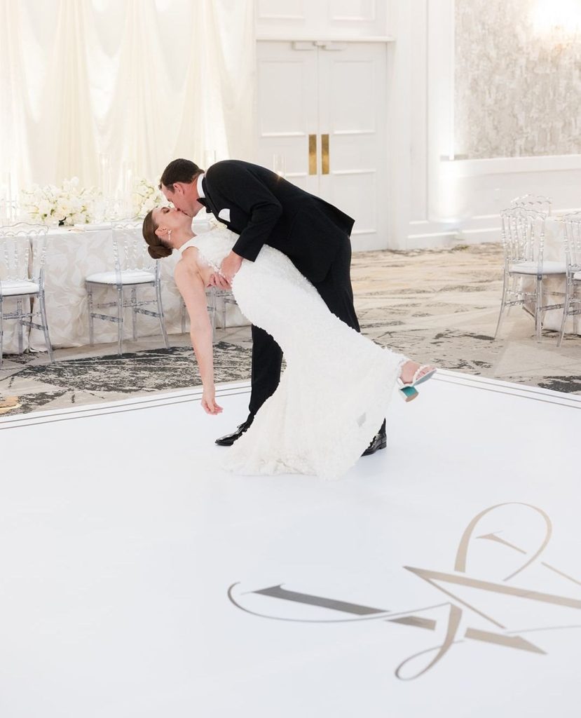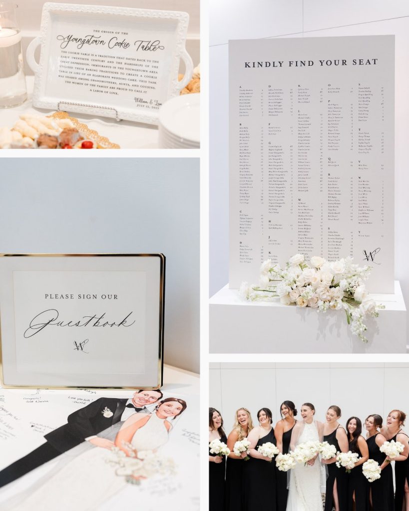 The design was a dreamy vision of creamy whites (hello, Pantone’s color of the year!), layered textures, and timeless elegance. Guests were welcomed into a space filled with textured linens, glowing candlelight, clear chairs with delicate scalloped detailing, and a stunning monogrammed dance floor that became the heart of the celebration. And of course-a Youngstown cookie table (IYKYK). A sweet nod to tradition that added personality and charm to an already unforgettable evening.