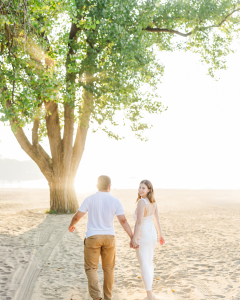 Alison and Josh have been together for a little over three years, and their love story continues to grow deeper with every chapter. They actually met years before officially dating through Alison’s cousin, and at the time, neither of them could have imagined how far their relationship would go. About a year into dating, they moved in together and started building a life together. As a photographer, Alison had always dreamed of having beautiful proposal photos and Josh pulled off the ultimate surprise by convincing her that one of her photographer colleagues needed models for a shoot. With the sun setting behind them at Edgewater Beach, Josh proposed in the sweetest way, and now they’re planning their wedding and counting down the days until forever officially begins.