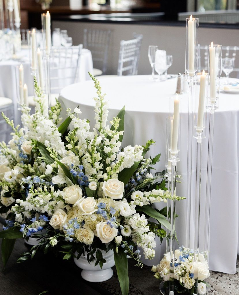 Soft blue bridesmaid dresses added an airy, romantic palette, perfectly complementing the day’s refined yet relaxed aesthetic. Dreamy florals layered the space with texture and movement, creating an atmosphere that felt both elevated and inviting. Every detail was thoughtful, but never overwhelming — a perfect balance of elegance and ease.