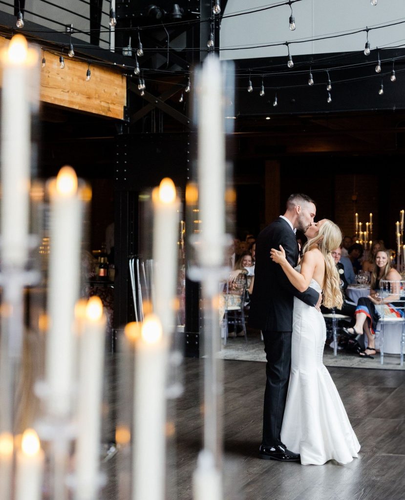 And then there was that veil moment. Caught gently in the wind, it felt cinematic and organic all at once — the kind of fleeting second that can’t be staged, only experienced. Those are the moments that tell the truest story of a wedding day, and Paige and Ricky’s was full of them. We loved the quiet, joy-filled moments while getting ready with the bridesmaids, the reception windows overlooking the city, and the way the room transformed into a glowing, candlelit space as evening fell. Another favorite was the sorbet in martini glasses as an elevated and different dessert experience for guests.