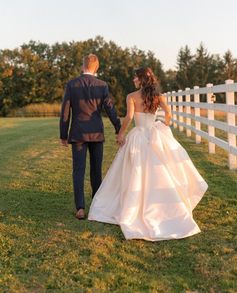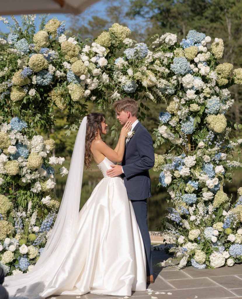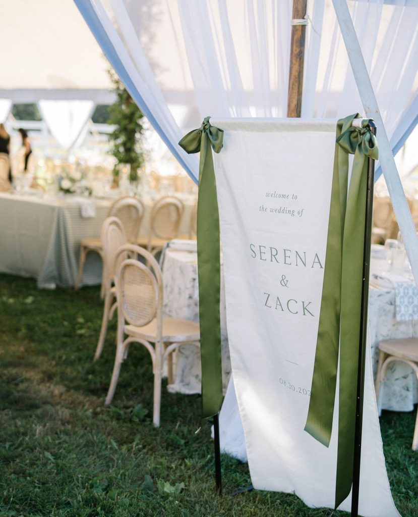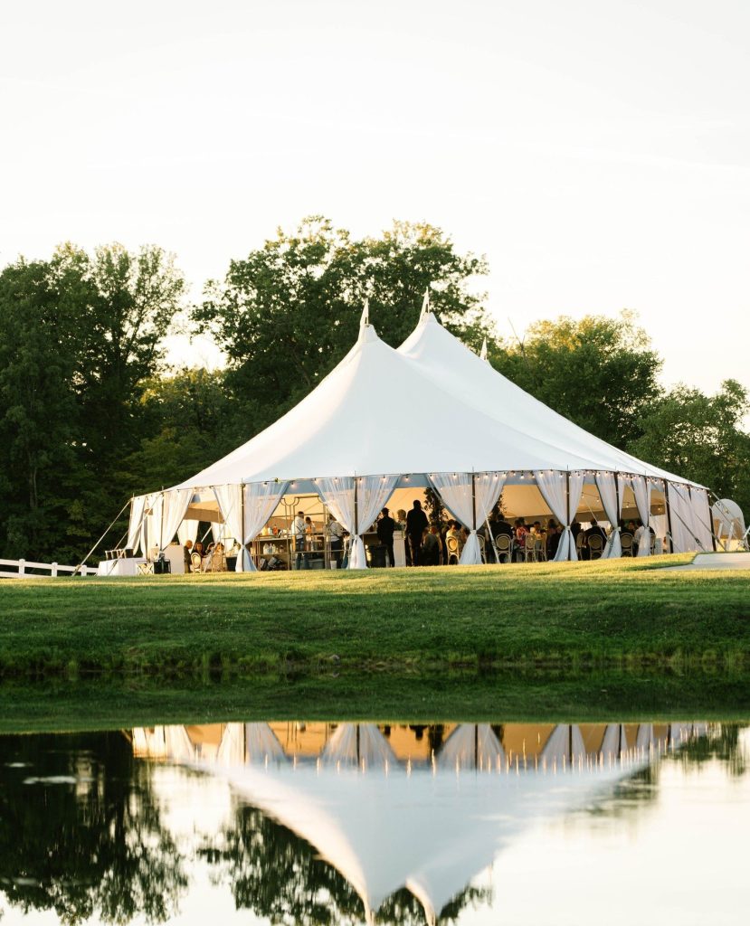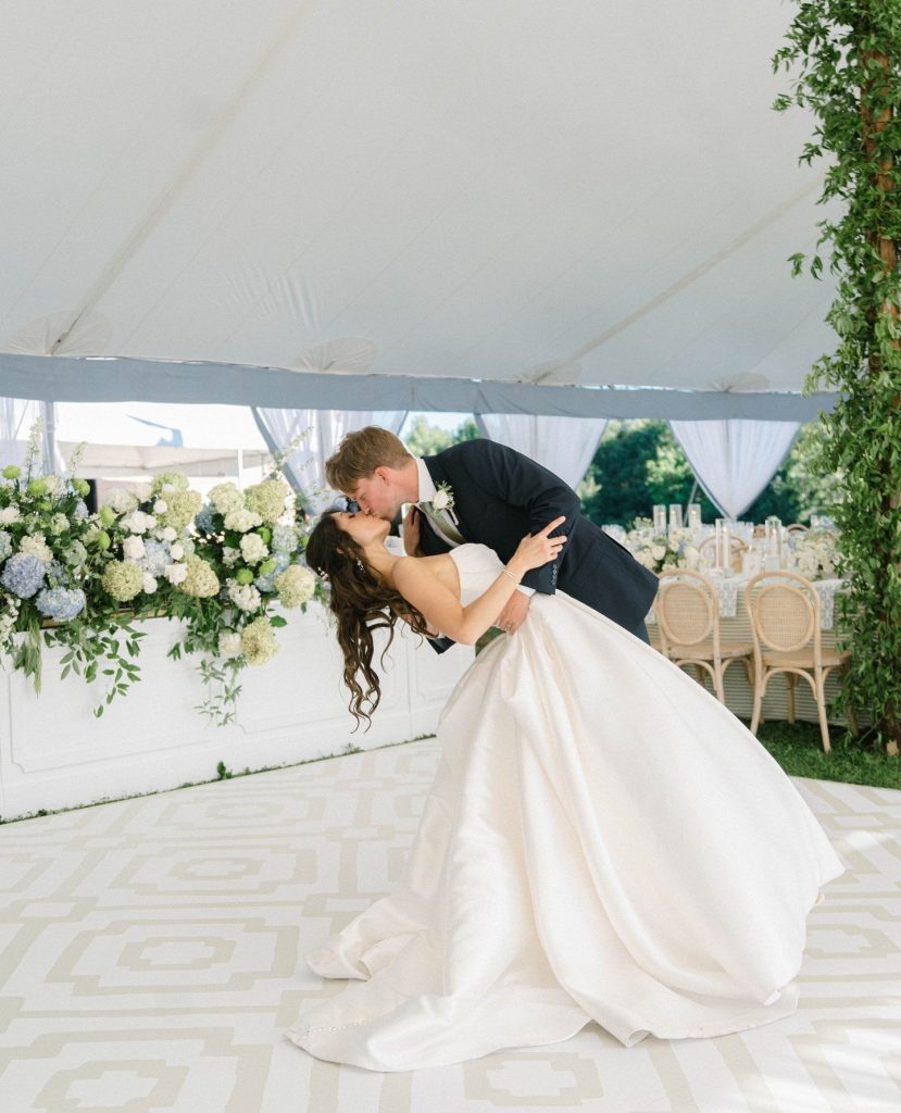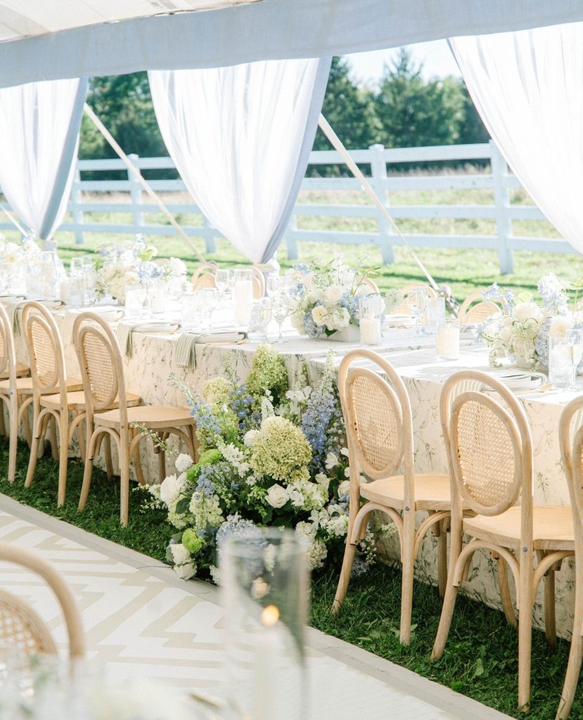 Basil Place offered Serena and Zack the kind of scenery couples dream about. Rolling views, lush summer greenery, and a serene pond reflecting the reception tent created a picture-perfect backdrop for their summer celebration. The ceremony was perfectly full of traditional moments. Held under a stunning floral arch, the couple’s ceremony incorporated a traditional Chinese Unity Tea Ceremony honoring Serena’s matron side of the family. During this tradition, the couple served tea to their parents and elders as a gesture of respect and gratitude. The act symbolizes welcoming each other’s families and formally uniting them. They also participated in a Hand Tying Ceremony, where their hands were bound together with cords, symbolizing commitment, unity, and the joining of two lives. This meaningful ritual is the origin of the phrase “tying the knot,” making it a perfect reflection of the day’s purpose.