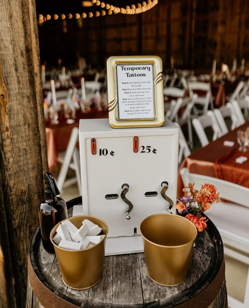 Retro Roamer Photo Booth brought a retro flair that guests couldn’t get enough of-snapping keepsake photos that perfectly captured the night’s energy. At the reception there was a temporary tattoo station that added the coolest little edge. It was playful, unexpected, and completely on brand for a couple who isn’t afraid to have fun. Instead of a traditional guest book, they opted for an audio guest book allowing loved ones to leave heartfelt (and likely hilarious) voice messages they’ll treasure forever. It’s those thoughtful, personality-packed choices that made the day feel so intimate.