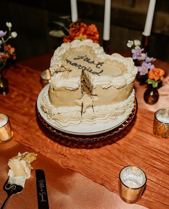 The sweet ending to their new beginning was the heart-shaped beauty in the dreamiest shade of brown, tying into the earthy fall palette while fitting the vintage and groovy vibes. Romantic, a little retro, and entirely charming.