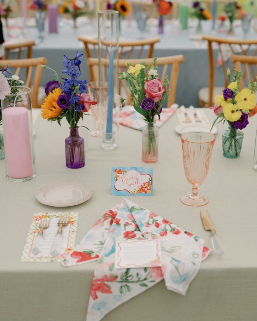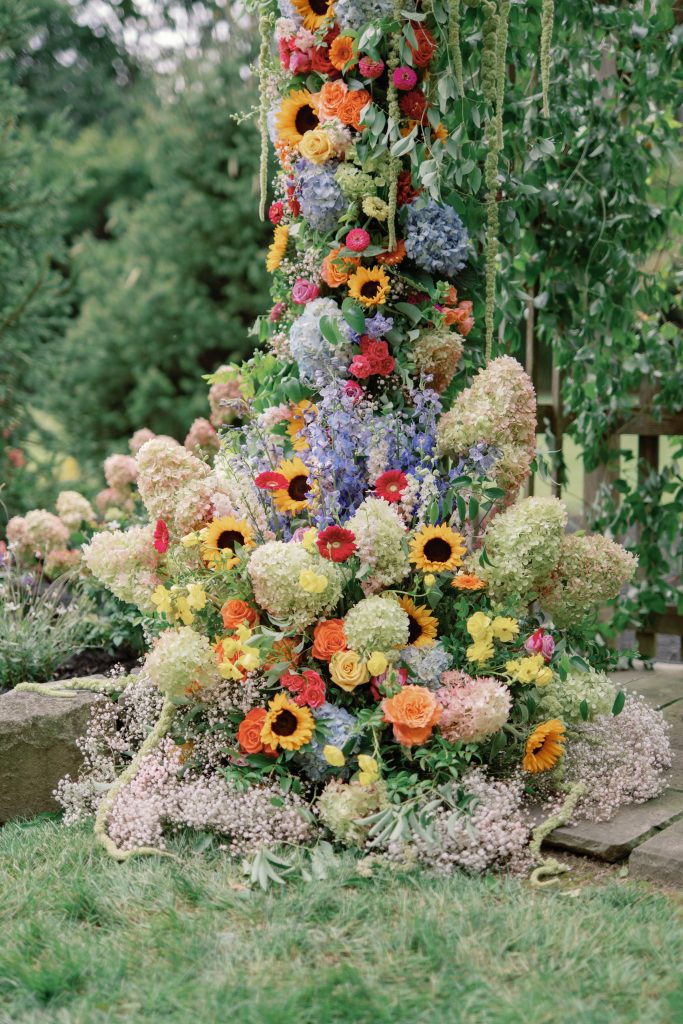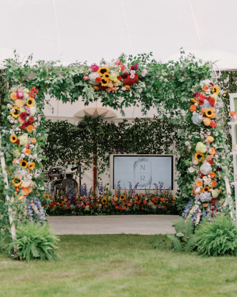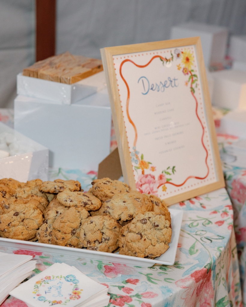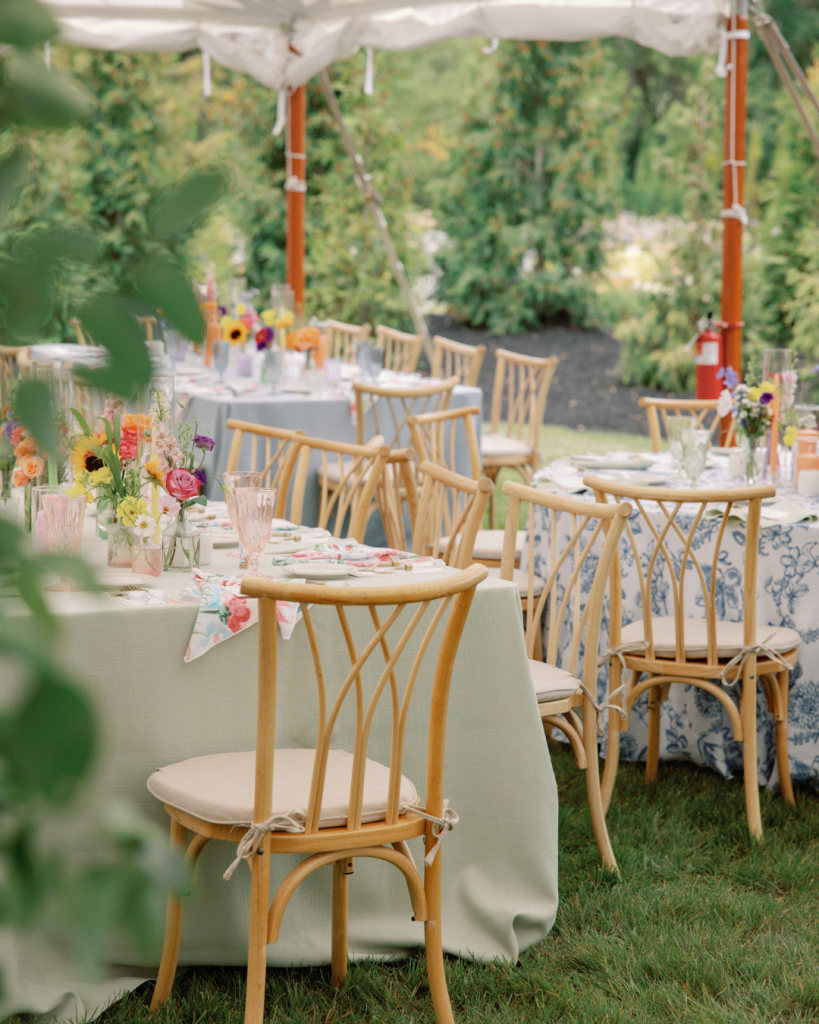 That backyard transformed into a vibrant, joy-filled wonderland. Bright blooms and sunflowers by Plantscaping & Blooms felt like a natural extension of the landscape, blending seamlessly with the setting while adding bold pops of color. The florals tied beautifully into the watercolor signage sprinkled throughout the day—each detail layered with intention, artistry, and fun.