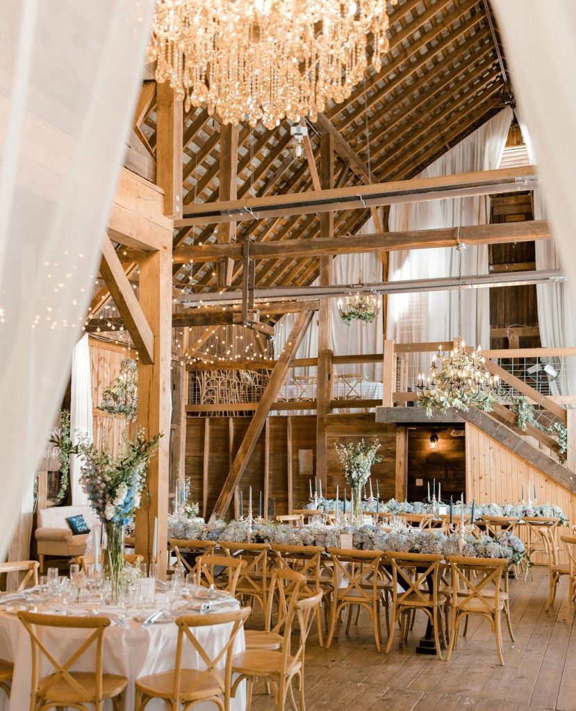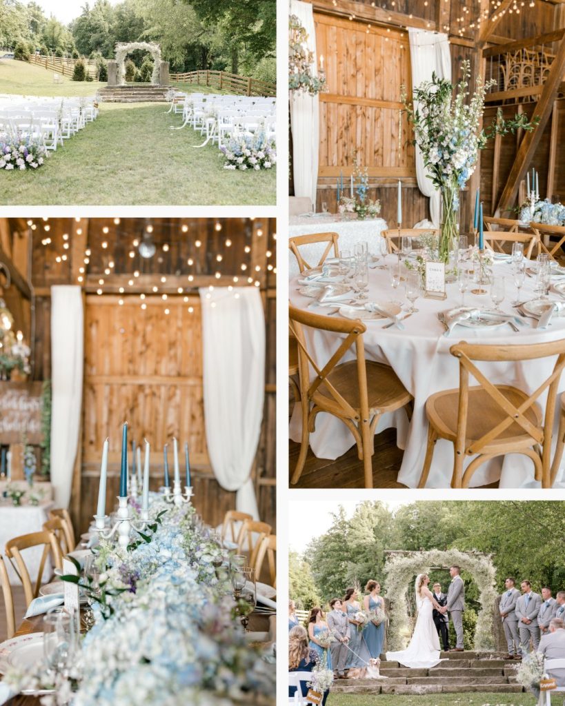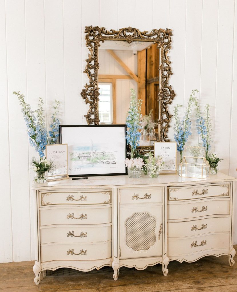 From the moment guests arrived, they were welcomed into a world thoughtfully crafted by So Bloom, where whimsy floated in the air as lightly as the baby’s breath threaded throughout the design. A ceremony arch layered with cloud-like sprigs of baby’s breath set a dreamy backdrop for heartfelt vows. Soft lilac hues and pale blue touches played gently together, echoing the season’s serenity.Wrapped in wood from floor to ceiling, the venue felt both cozy and refined. The décor brought the space to life with a touch of elevated vintage elegance.